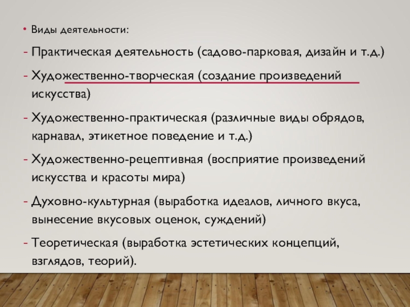 Слайд 6Виды деятельности: