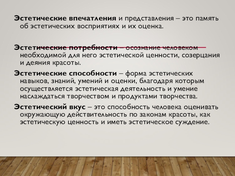 Слайд 10Эстетические впечатления и представления – это память об эстетических восприятиях и