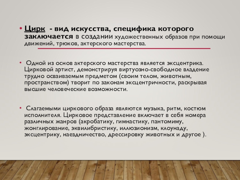 Цирк - вид искусства, специфика которого заключается в создании художественных образов