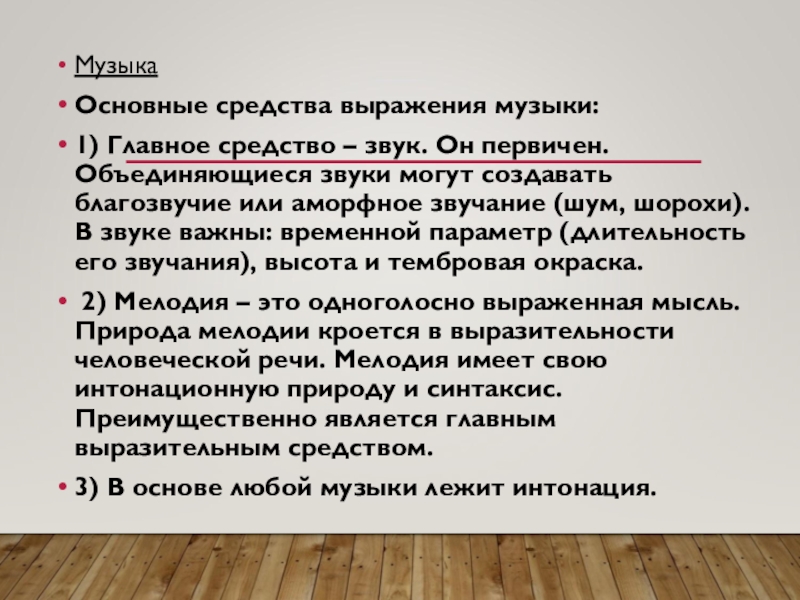 Основные средства выражения музыки: