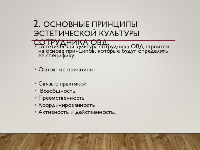 Слайд 832. ОСНОВНЫЕ ПРИНЦИПЫ ЭСТЕТИЧЕСКОЙ КУЛЬТУРЫ СОТРУДНИКА ОВД.