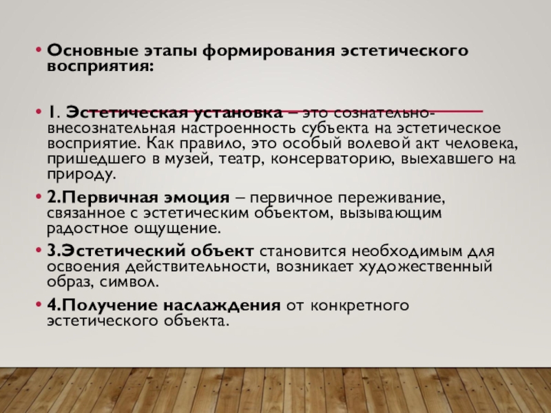 Слайд 9Основные этапы формирования эстетического восприятия: