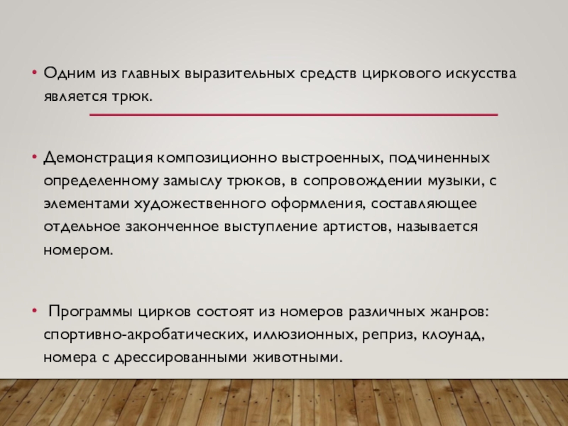 Одним из главных выразительных средств циркового искусства является трюк.