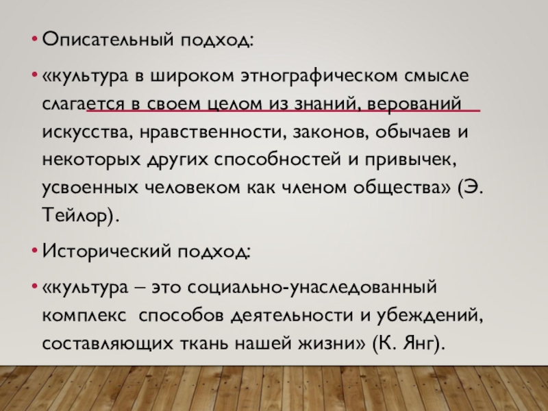 «культура – это социально-унаследованный комплекс способов деятельности и убеждений, составляющих ткань нашей жизни» (К. Янг).