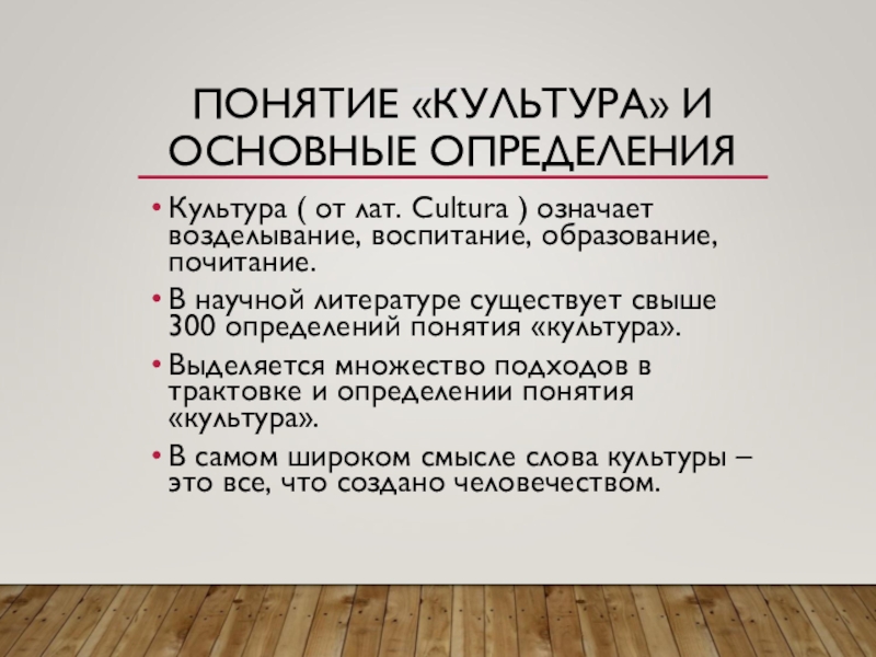 Слайд 78ПОНЯТИЕ «КУЛЬТУРА» И ОСНОВНЫЕ ОПРЕДЕЛЕНИЯ