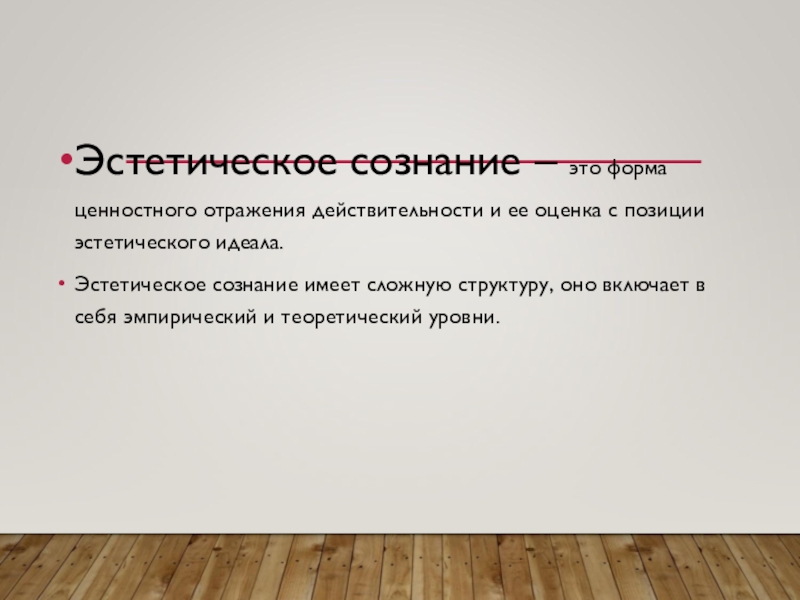Слайд 8Эмпирический уровень эстетического сознания – это совокупность чувств, эмоций, переживаний, впечатлений,