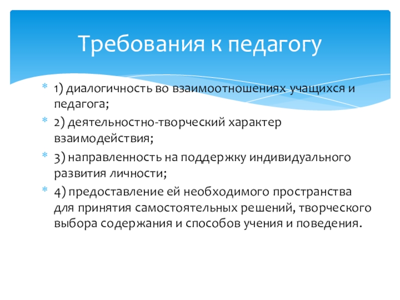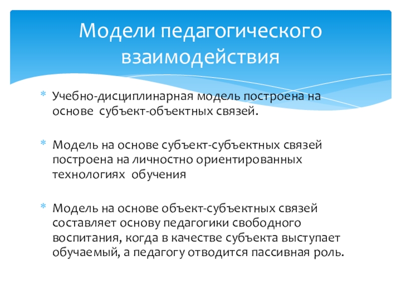 Модели взаимодействия в современном педагогическом процессе интерпретируются таким образом (М. Т. Громкова).
