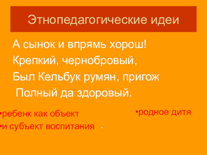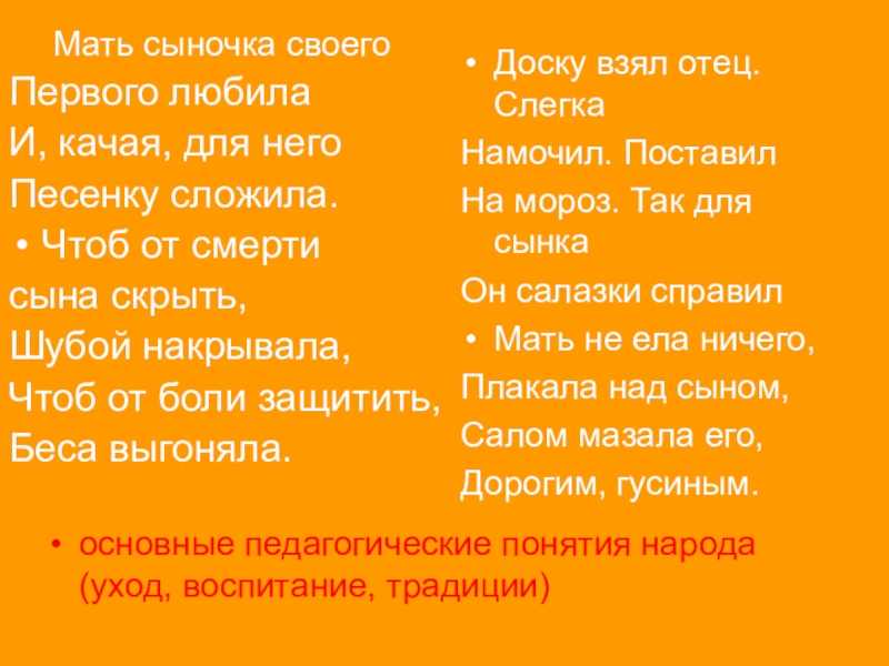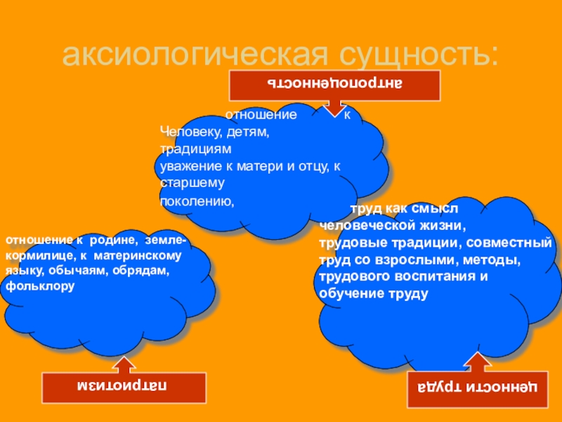 отношение к родине, земле-кормилице, к материнскому языку, обычаям, обрядам, фольклору
