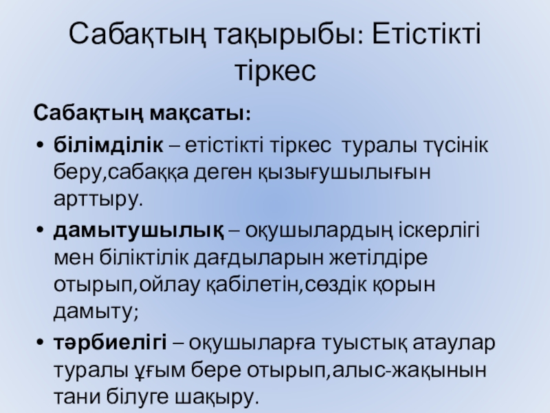 білімділік – етістікті тіркес туралы түсінік беру,сабаққа