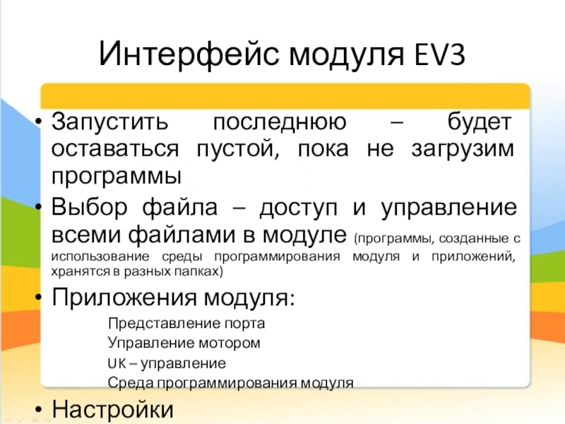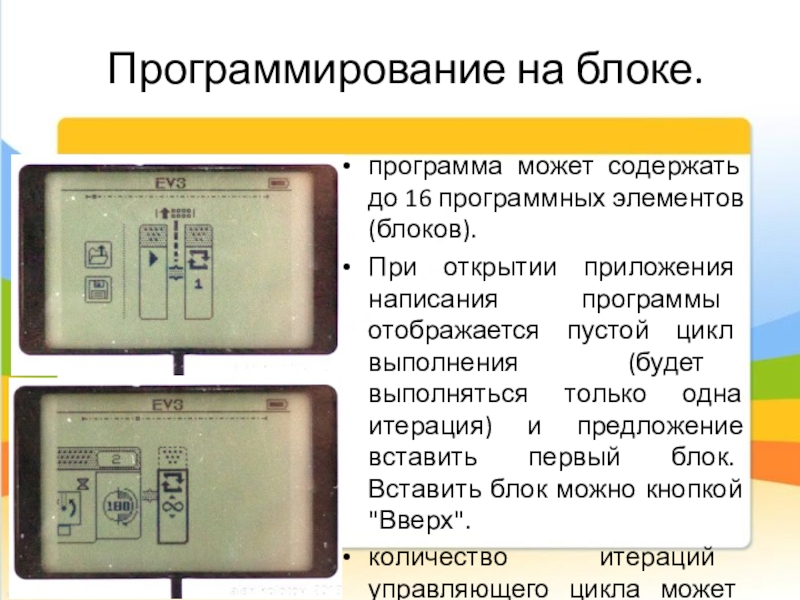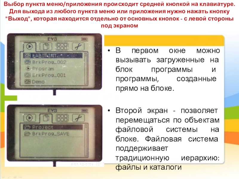 Слайд 13В первом окне можно вызывать загруженные на блок программы и программы,