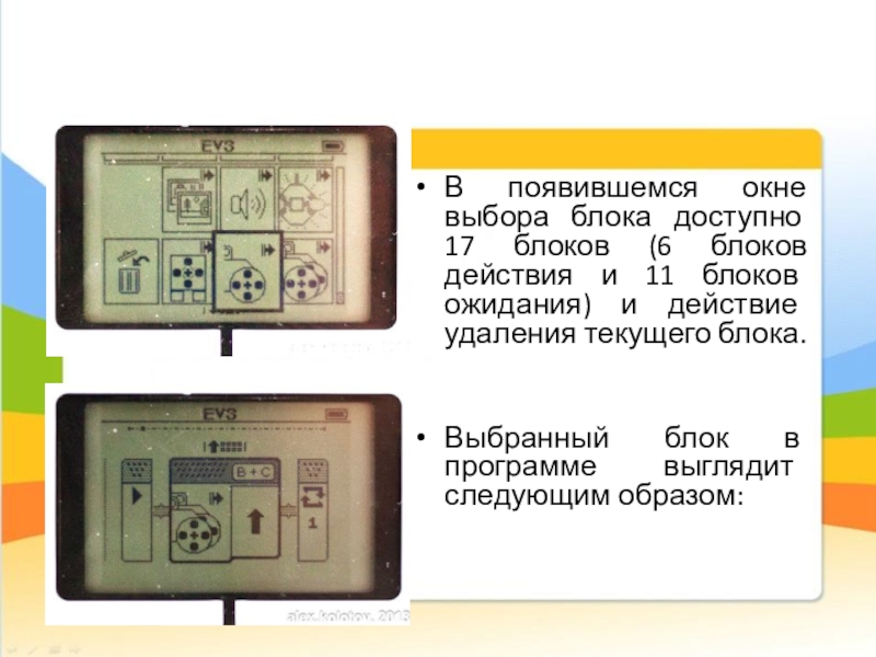 Слайд 18В появившемся окне выбора блока доступно 17 блоков (6 блоков действия