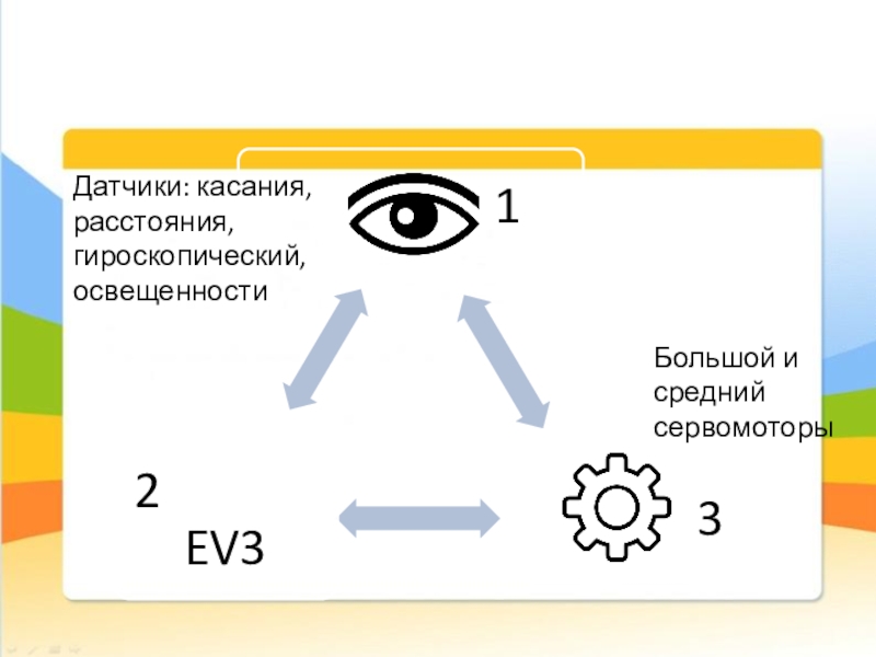 Слайд 9датчики представляют роботу необходимую информацию из внешней среды.