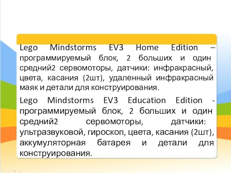 Слайд 4Lego Mindstorms EV3 Home Edition – программируемый блок, 2 больших и