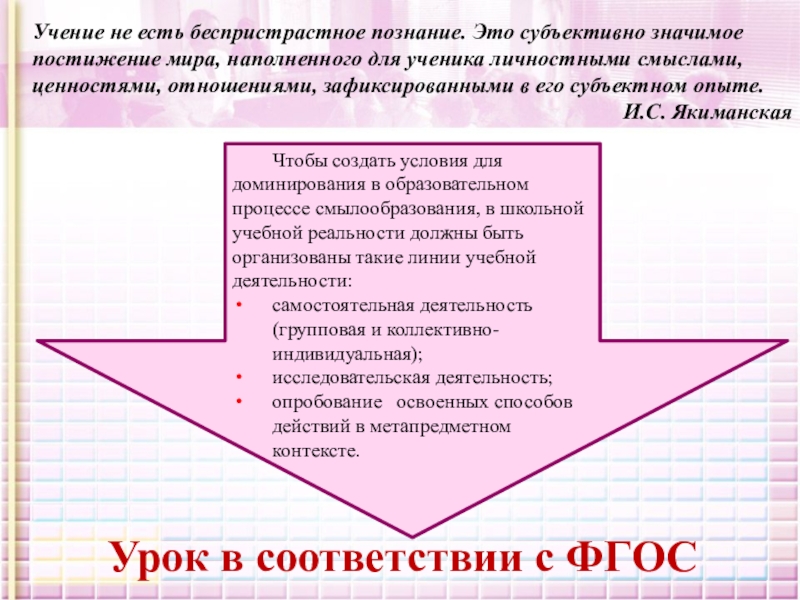 Учение не есть беспристрастное познание. Это субъективно значимое постижение мира, наполненного для ученика личностными смыслами,