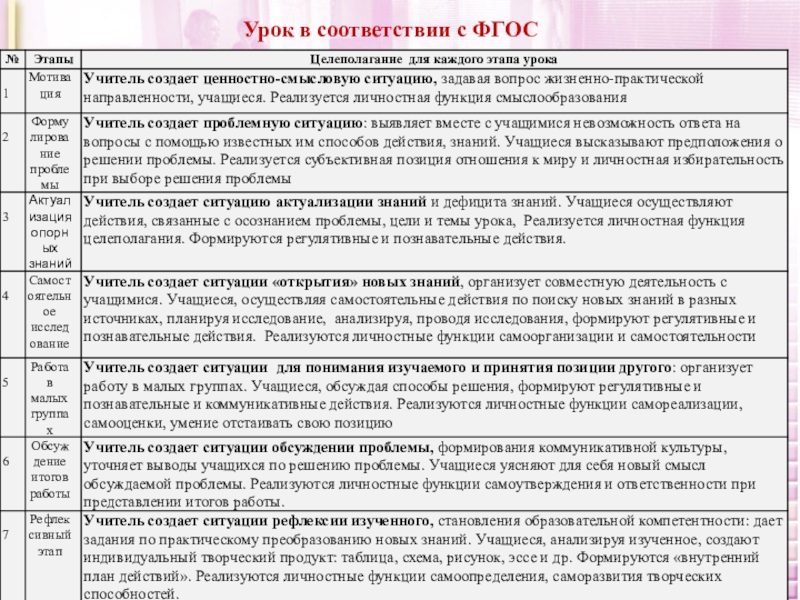 Урок в соответствии с ФГОС