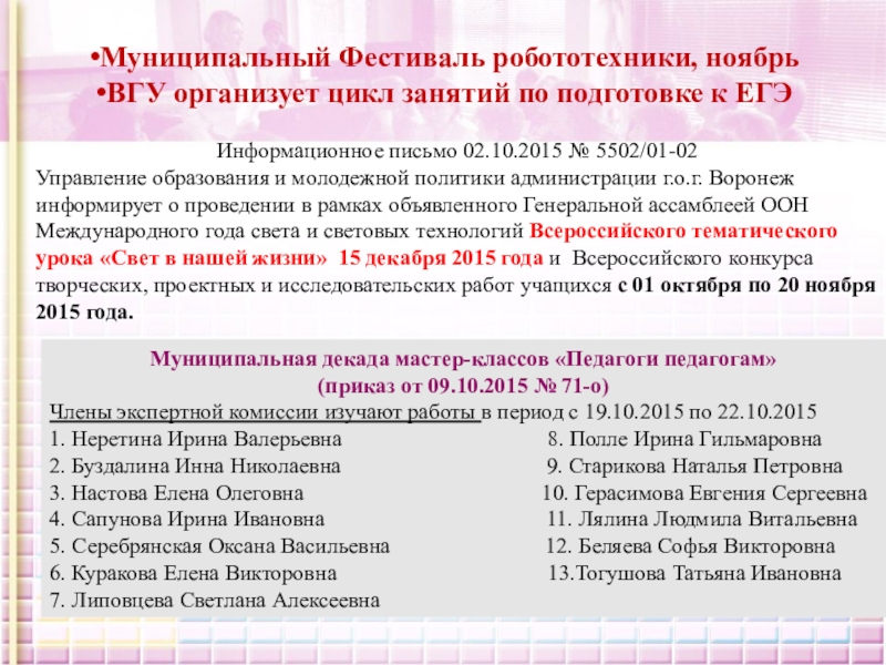 3. Настова Елена Олеговна 10. Герасимова Евгения Сергеевна