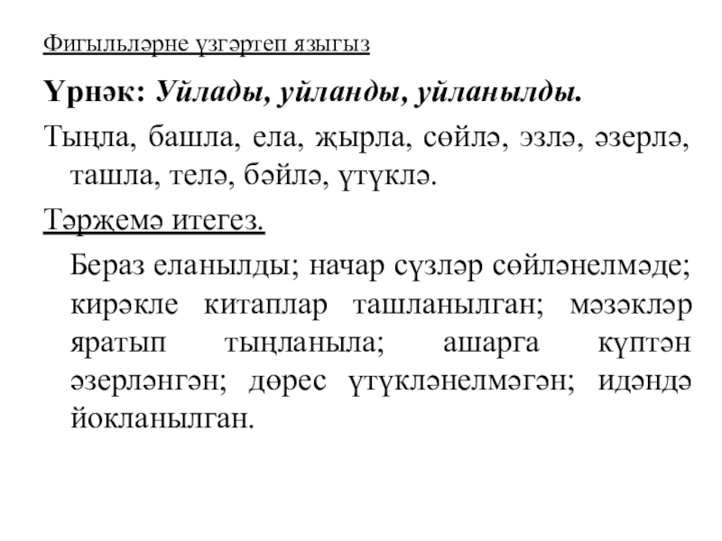 Слайд 6Фигыльләрне үзгәртеп языгыз