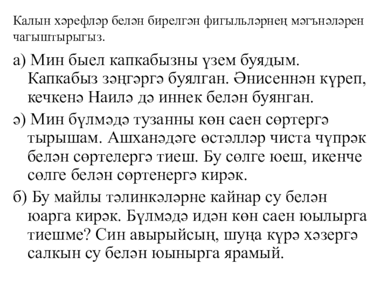 Слайд 10Калын хәрефләр белән бирелгән фигыльләрнең мәгънәләрен чагыштырыгыз.