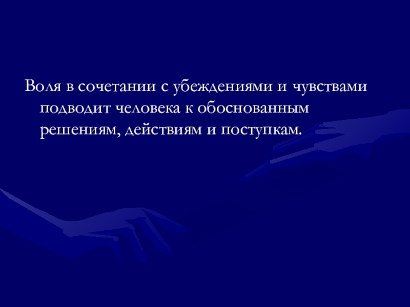 Слайд 8Воля в сочетании с убеждениями и чувствами