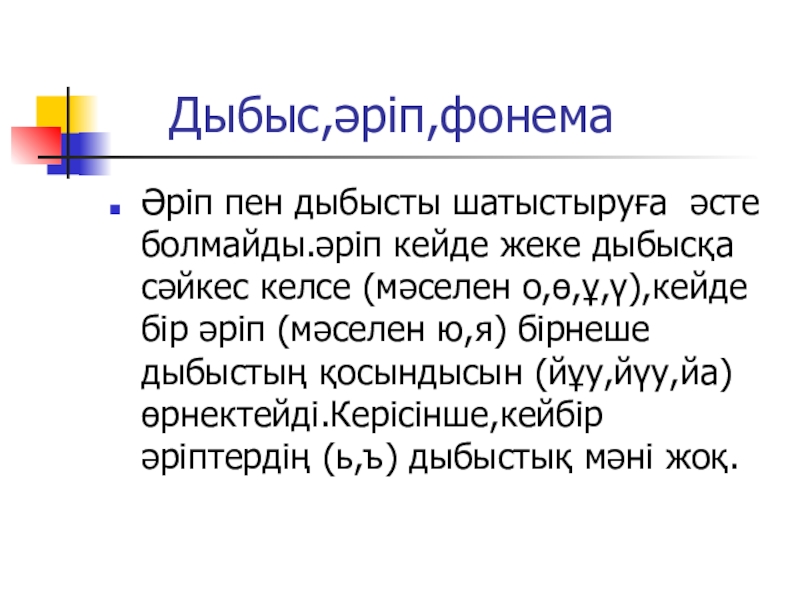 Әріп пен дыбысты шатыстыруға әсте болмайды.әріп кейде жеке дыбысқа
