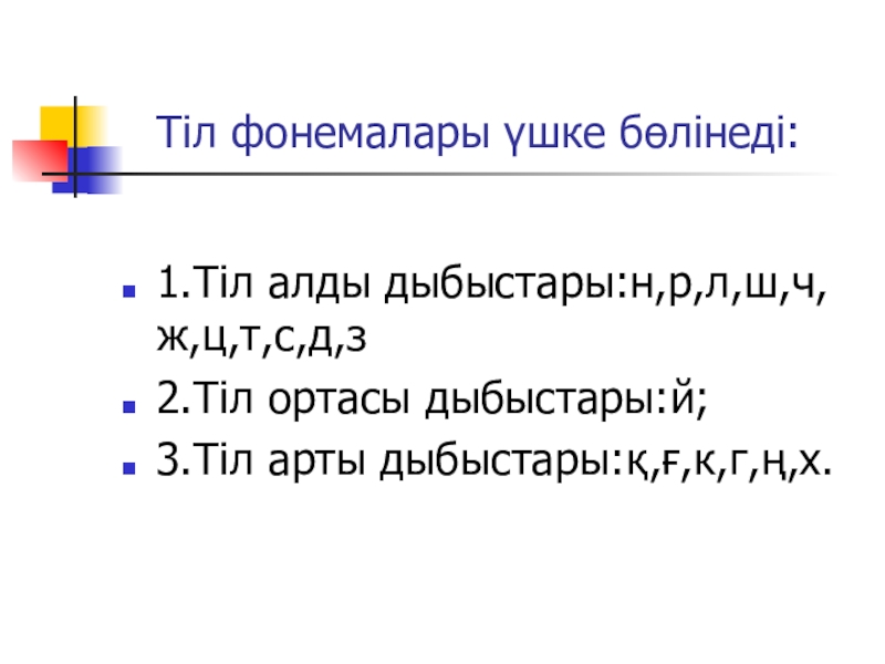 Слайд 13 Тіл фонемалары үшке бөлінеді: