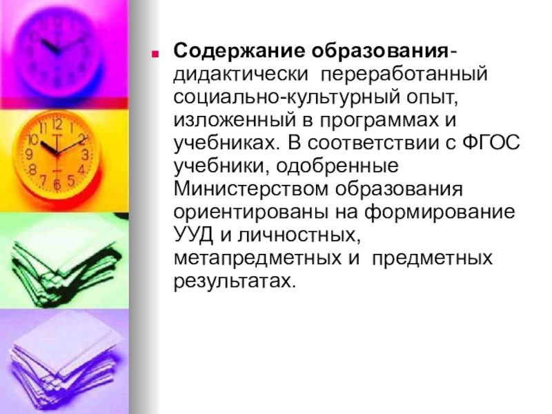 Слайд 3Содержание образования- дидактически переработанный социально-культурный опыт, изложенный в программах и учебниках.