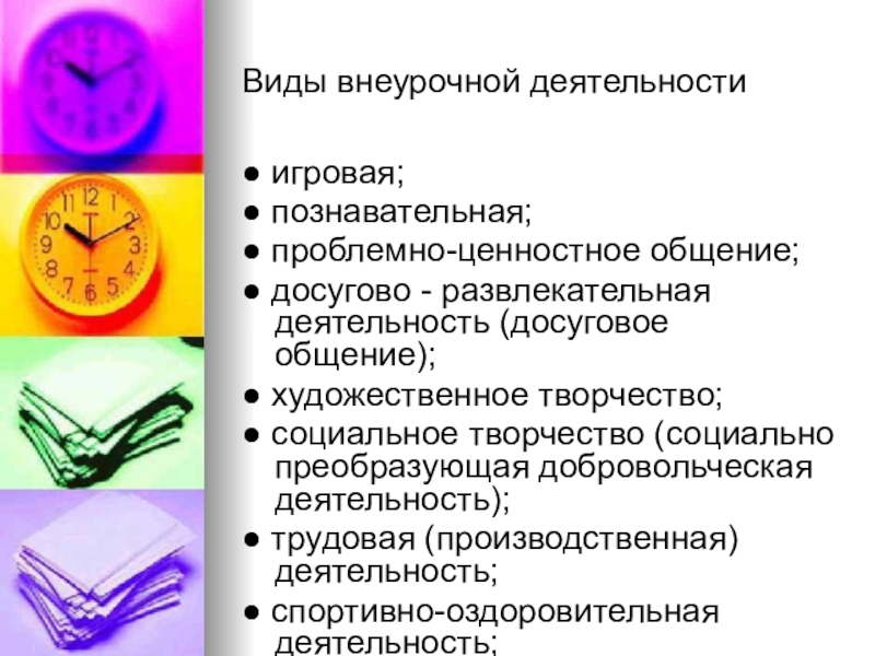 деятельность, организуемая во внеурочное время для удовлетворения потребностей учащихся в содержательном досуге, их участии в самоуправлении и общественно полезной деятельности.