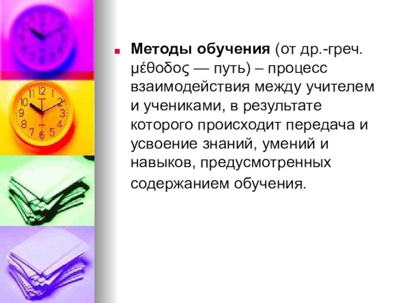 Слайд 4Методы обучения (от др.-греч. μέθοδος — путь) – процесс взаимодействия между учителем