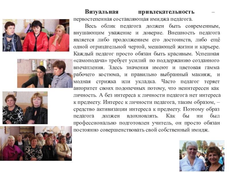 Слайд 9 Визуальная привлекательность – первостепенная составляющая имиджа педагога.