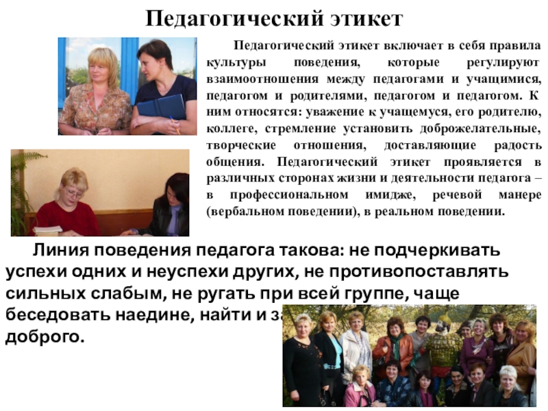 Педагогический этикет включает в себя правила культуры поведения, которые регулируют