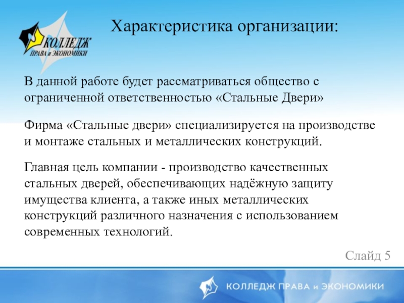 В данной работе будет рассматриваться общество с ограниченной ответственностью «Стальные Двери»