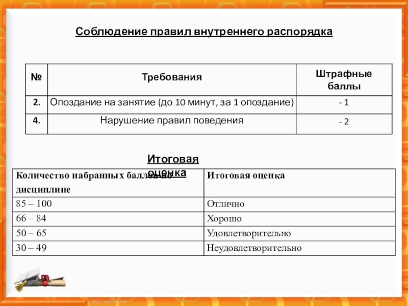 Соблюдение правил внутреннего распорядка Итоговая оценка