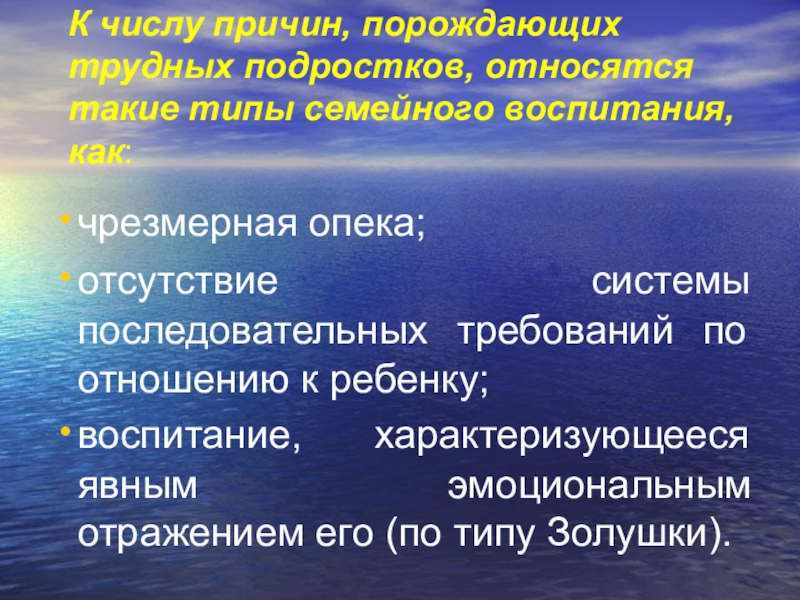 воспитание, характеризующееся явным эмоциональным отражением его (по типу Золушки).