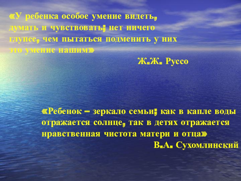 «У ребенка особое умение видеть, думать и чувствовать; нет ничего глупее, чем пытаться подменить у них это умение нашим»