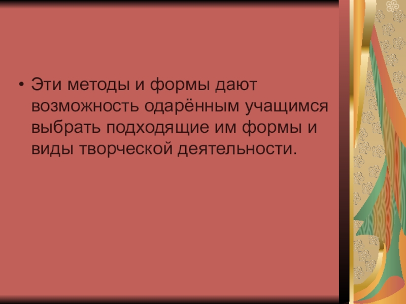 Эти методы и формы дают возможность одарённым учащимся выбрать подходящие им