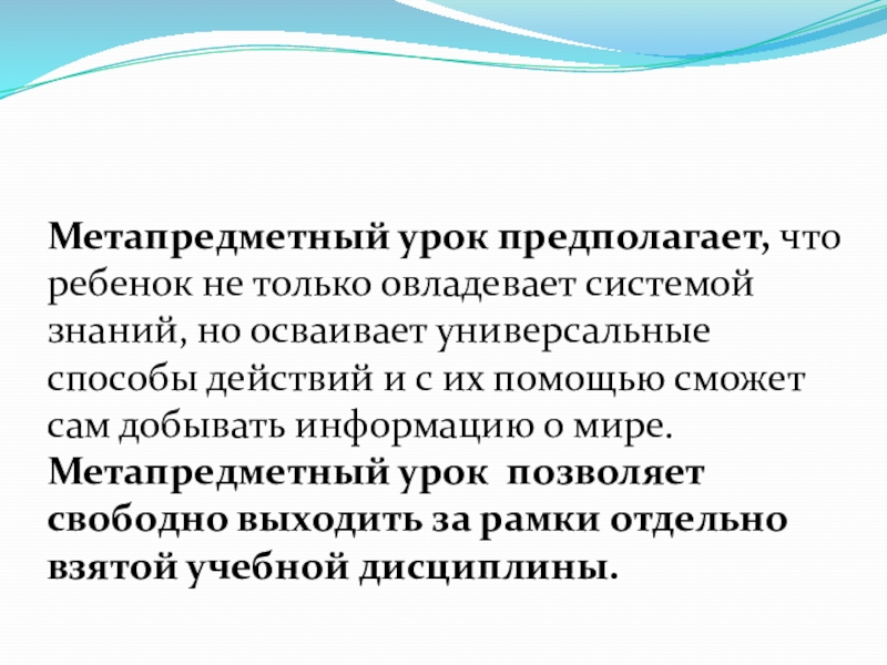 Слайд 21Метапредметный урок предполагает, что ребенок не только овладевает системой знаний, но