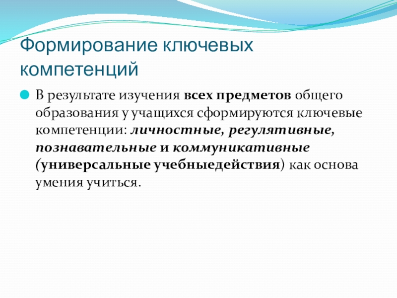 сформируются ключевые компетенции: личностные, регулятивные, познавательные и коммуникативные (универсальные учебныедействия) как основа умения учиться.