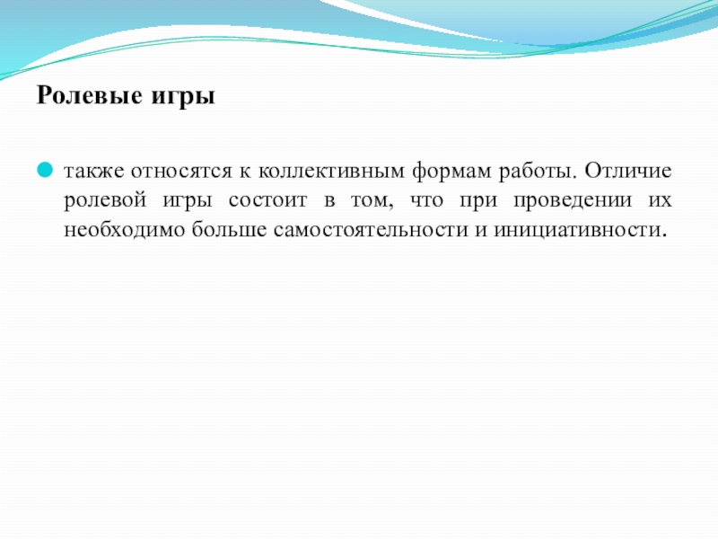 также относятся к коллективным формам работы. Отличие ролевой игры