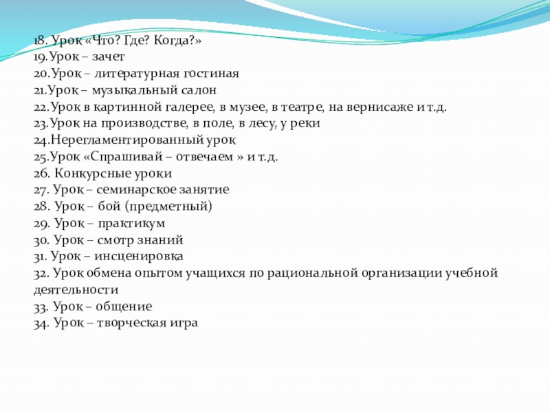 Слайд 34Нетрадиционные формы уроков, применение которых так или иначе будет формировать