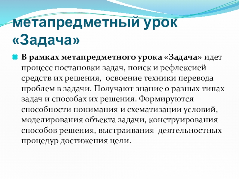 В рамках метапредметного урока «Задача» идет процесс постановки задач,