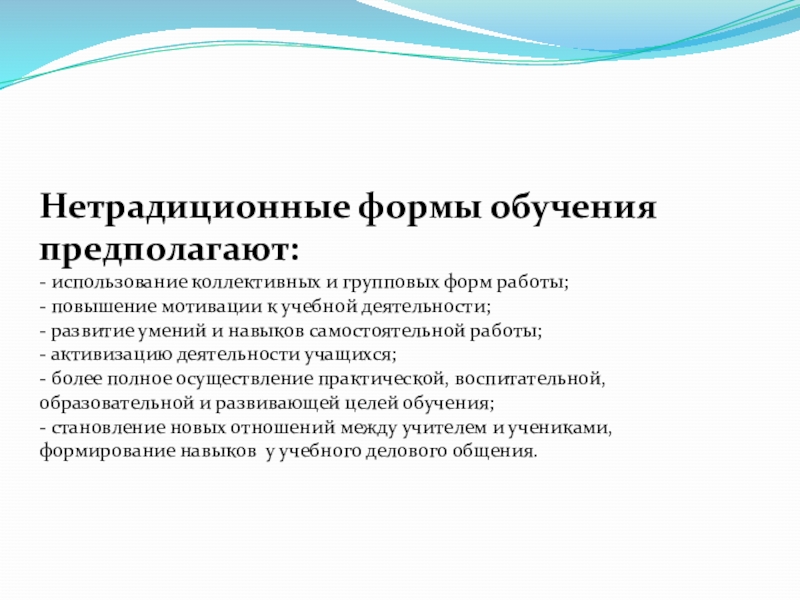 Слайд 37Нетрадиционные формы обучения предполагают: