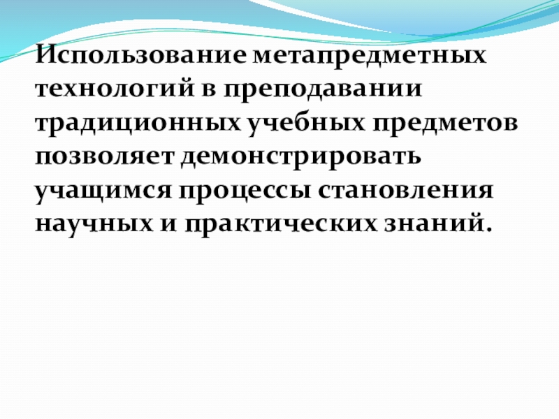 Слайд 23Использование метапредметных технологий в преподавании традиционных учебных предметов позволяет демонстрировать учащимся
