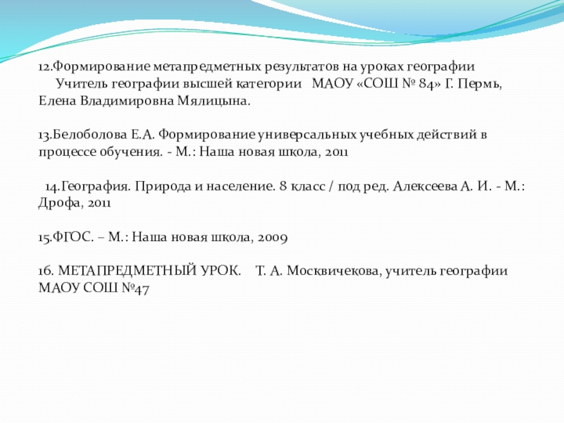 9.http://murzim.ru/nauka/pedagogika/28903-fundamentalnye-obrazovatelnye-obekty-v-kurse-shkolnoy-fizicheskoy-geografii-kak-sredstvo-razvitiya-metapredmetnosti.html