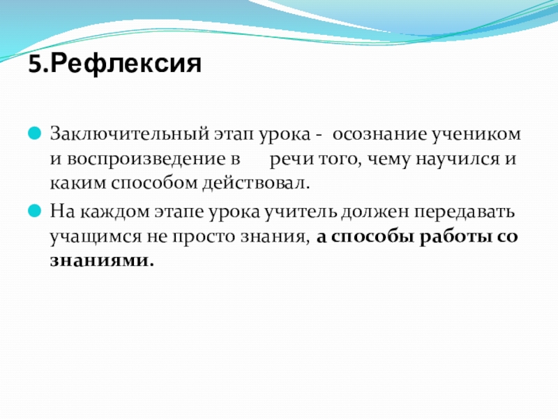 На каждом этапе урока учитель должен передавать учащимся не просто знания, а способы работы со знаниями.