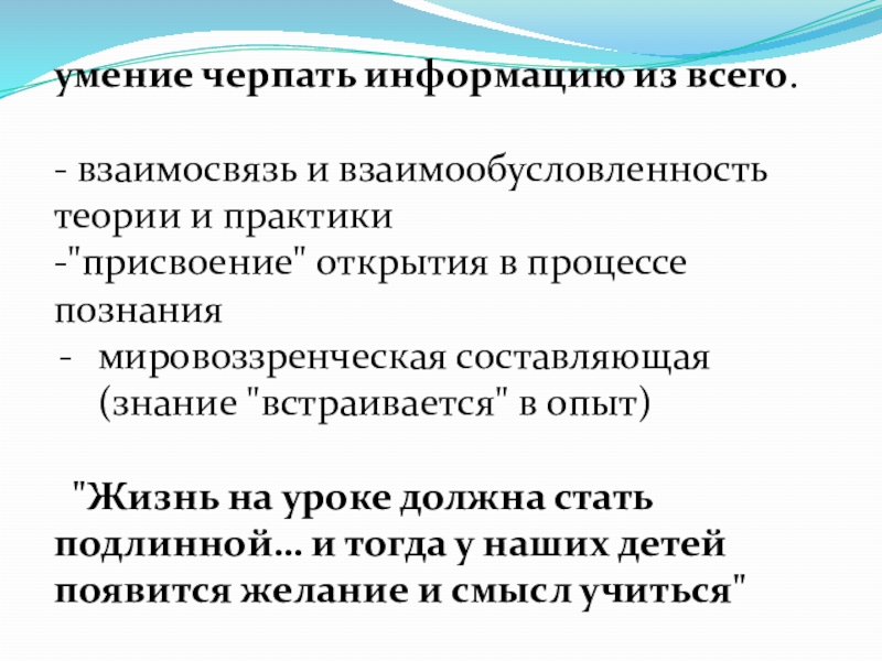 - ученик осваивает способы, даже не деятельности – ЖИЗНИ.