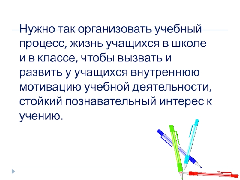 Нужно так организовать учебный процесс, жизнь учащихся в школе и в классе, чтобы вызвать и развить у