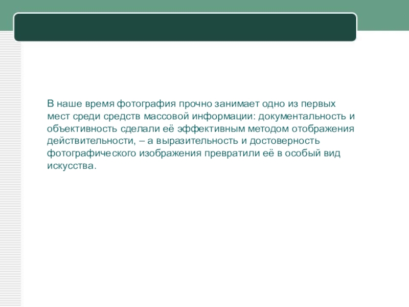 Слайд 2В наше время фотография прочно занимает одно из первых мест среди