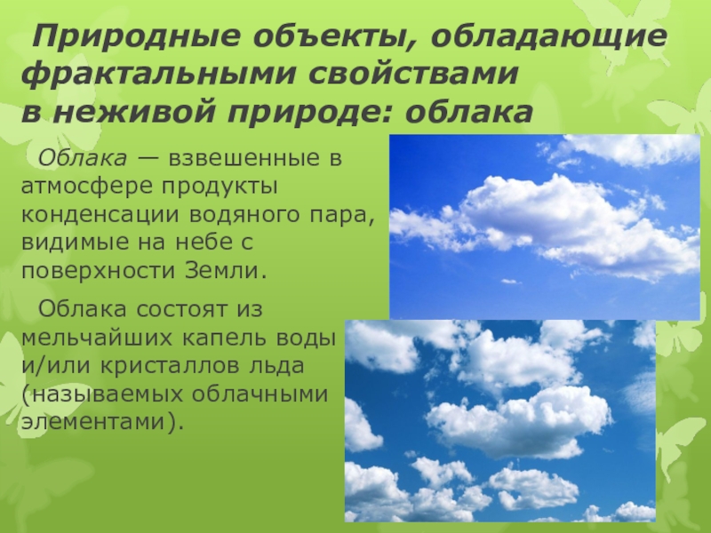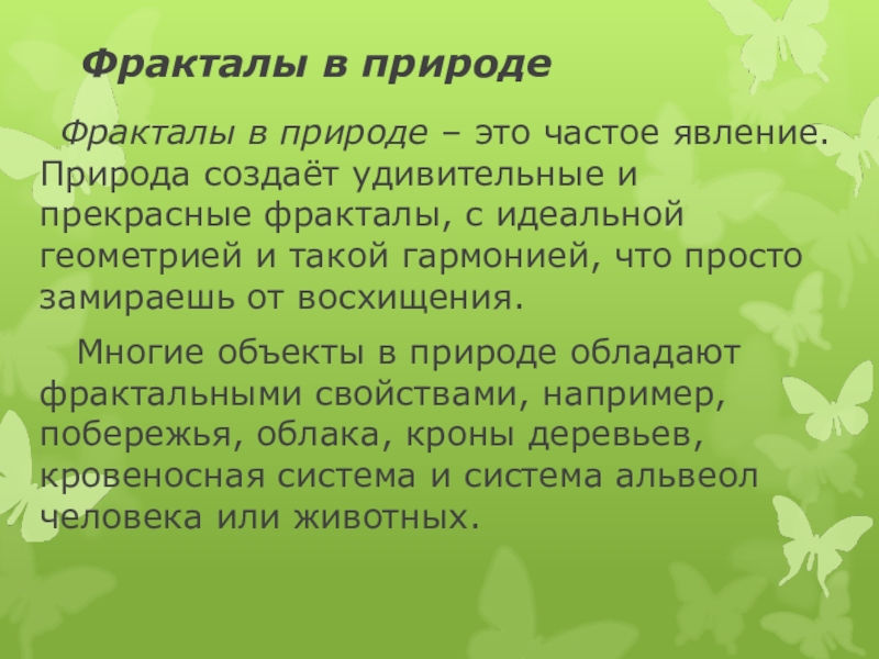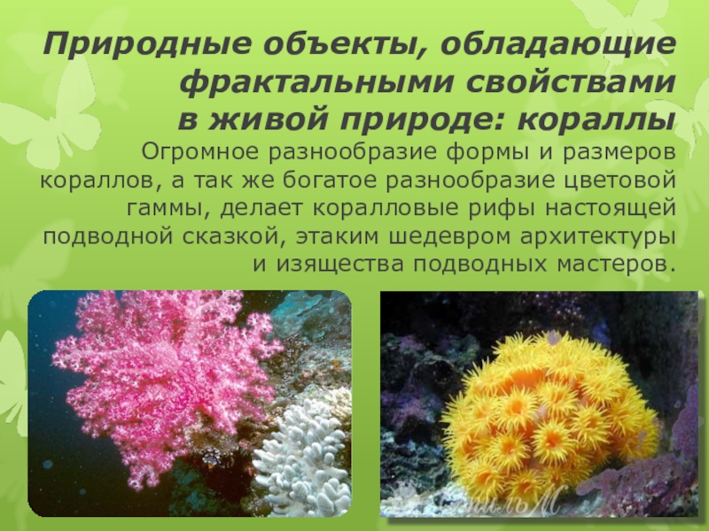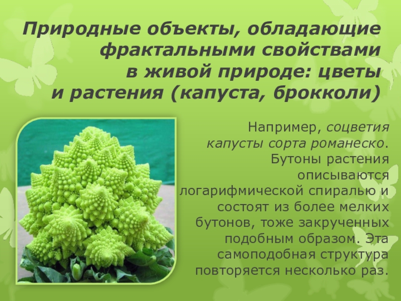 Слайд 20 Природные объекты, обладающие фрактальными свойствами