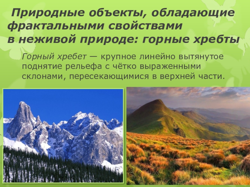 Слайд 23 Природные объекты, обладающие фрактальными свойствами