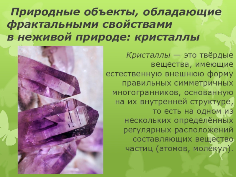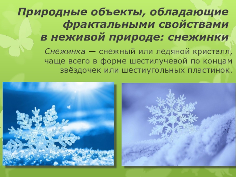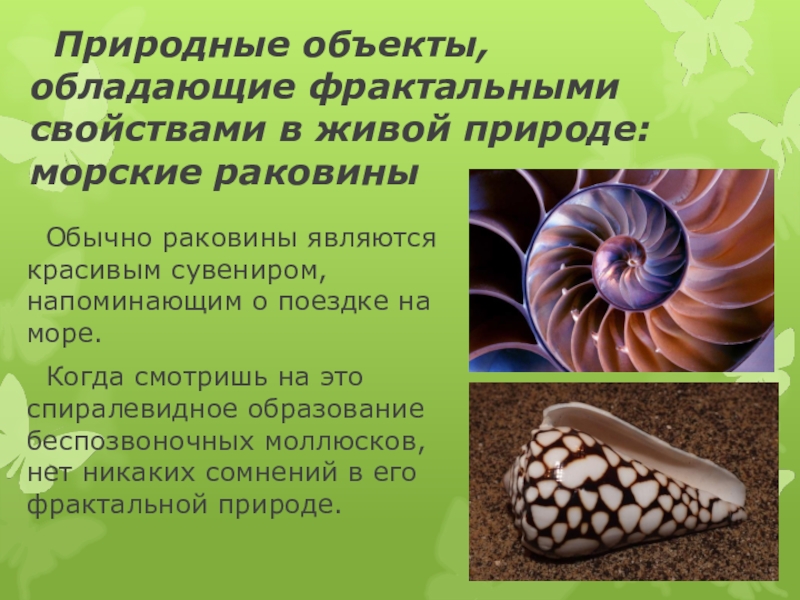 Слайд 21 Природные объекты, обладающие фрактальными свойствами